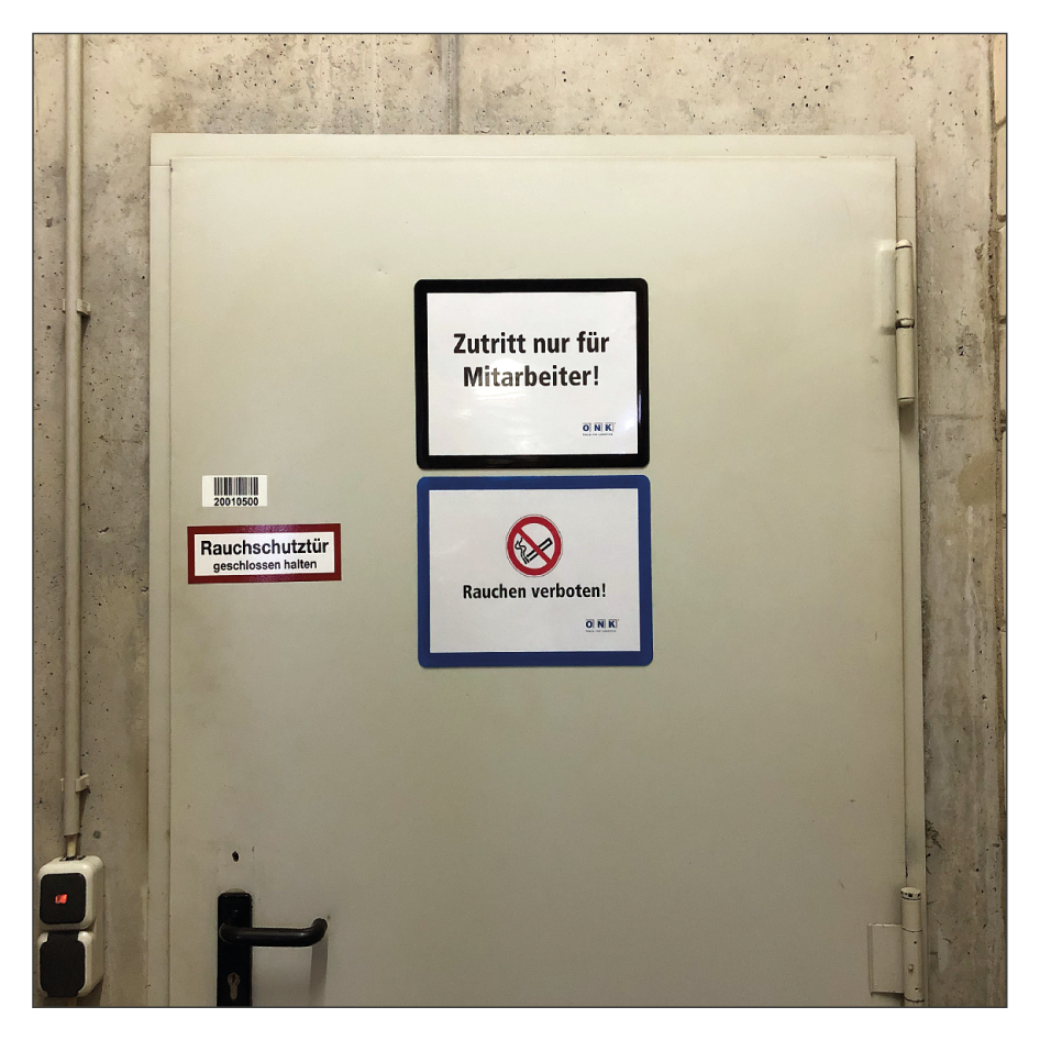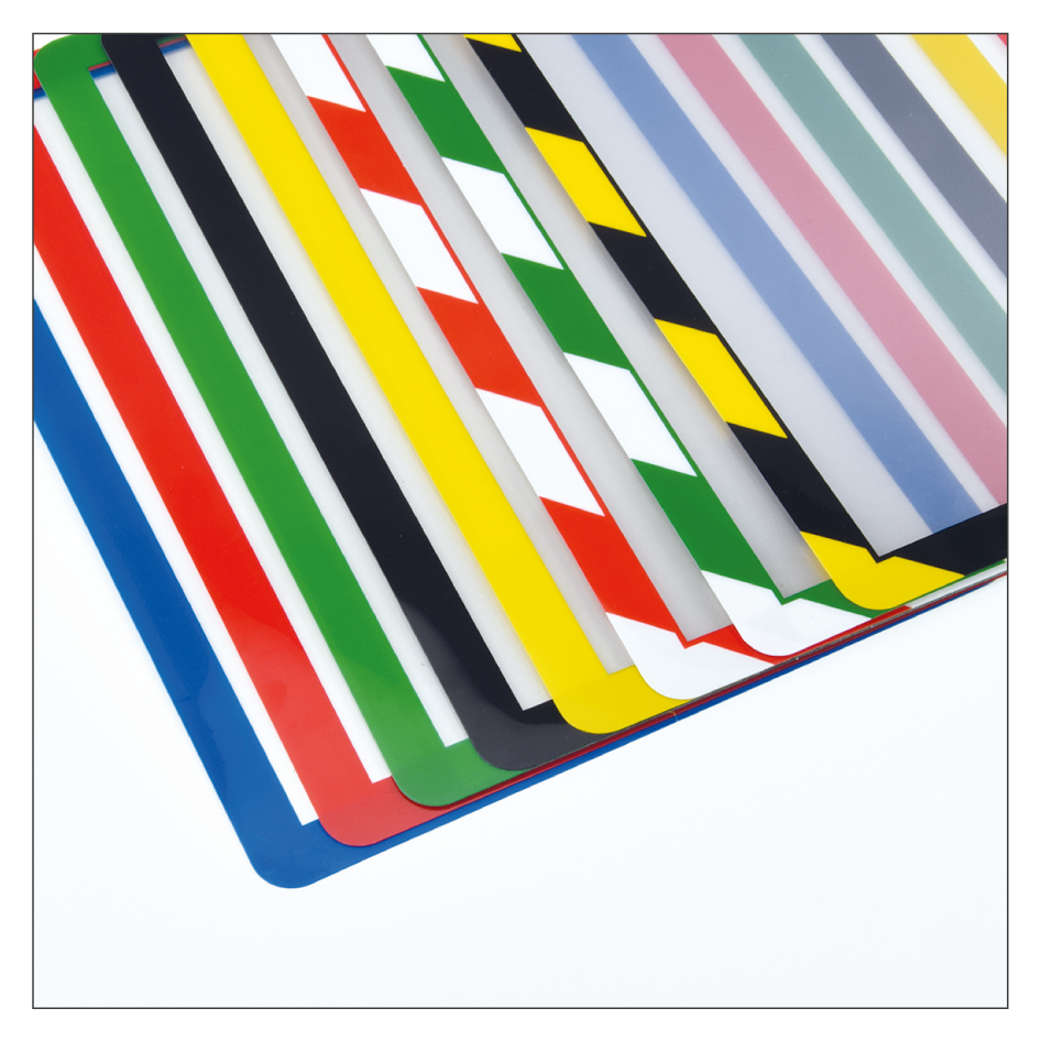 - Selbstklebende Kennzeichnungsrahmen haften am besten auf glatten Oberflächen. Bei unebenen oder rauen Flächen ist die Haftung nicht optimal bzw. nicht gegeben.