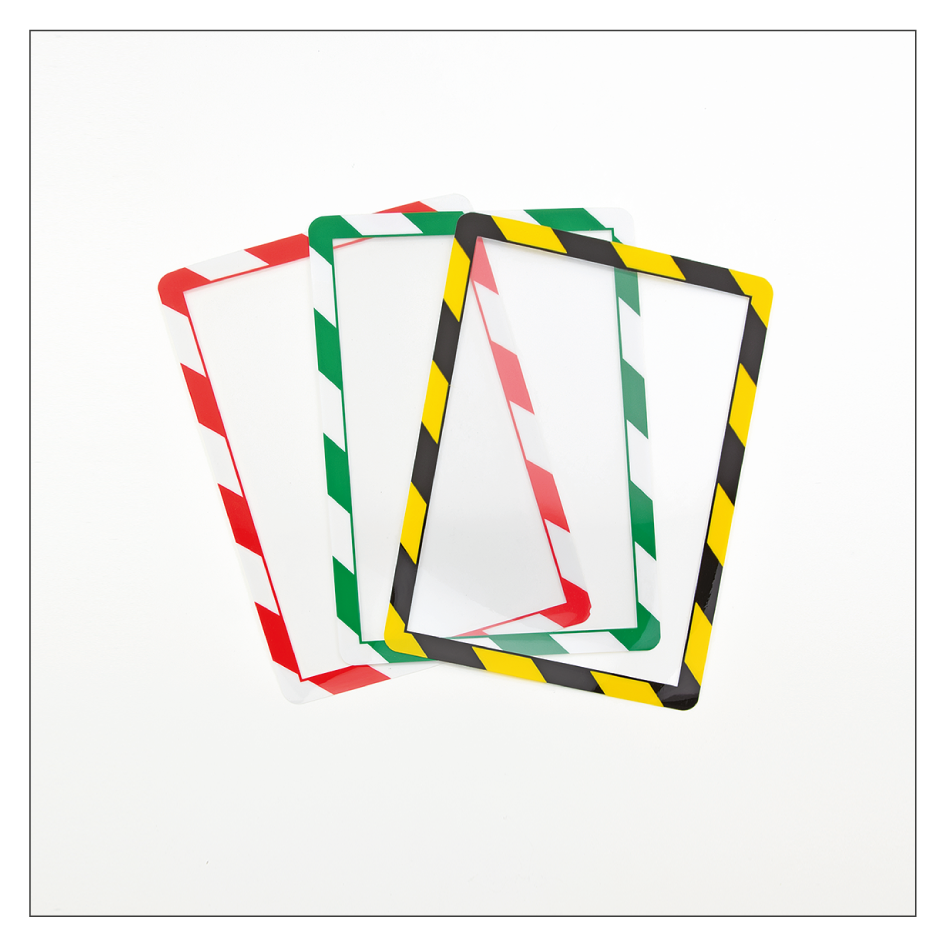 - Zweifarbige Rahmen (Warnstreifen) sind nur im DIN A4-Format erhältlich.