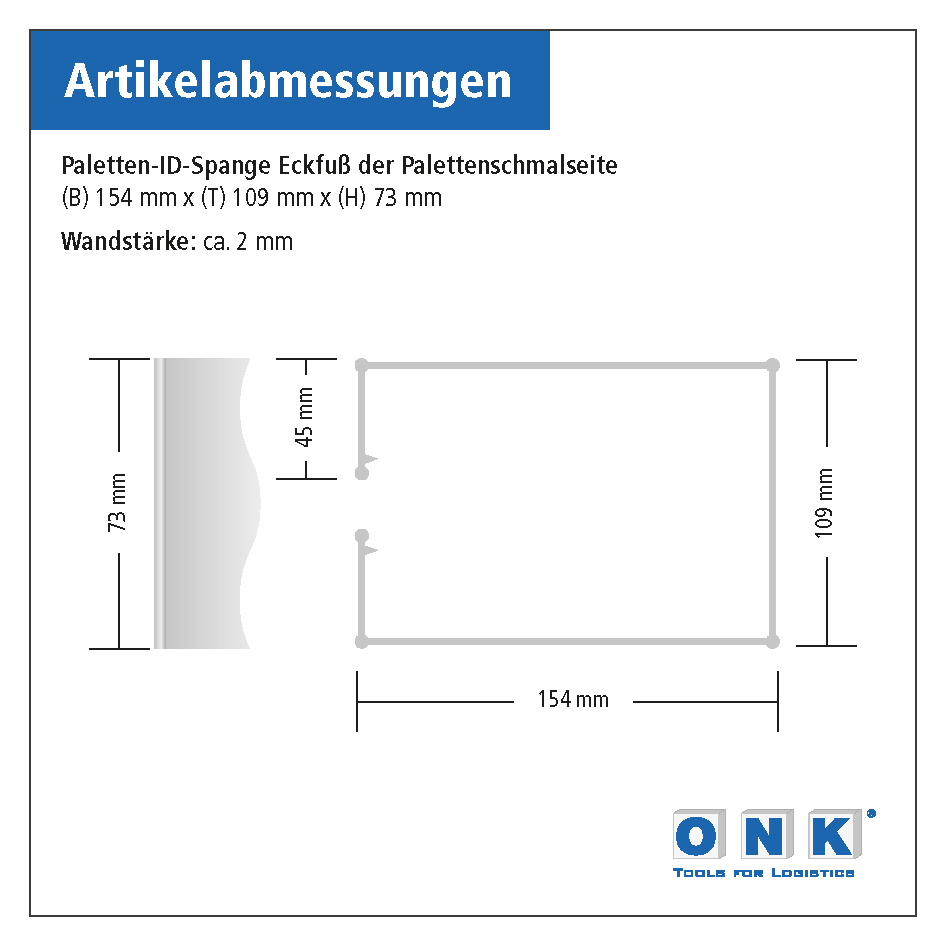Artikelausführung dieser Paletten-ID-Spange für den Eckfuß der Palettenschmalseite – PAL.GE.KKS.OA: