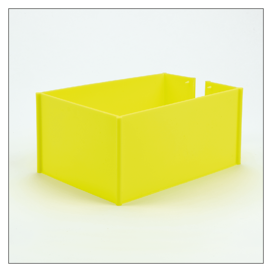 Material: schlagfestes Polypropylen, Stärke 2 mm, schmalseitig geöffnet mit Kaltbruchverstärkungen an den Kanten