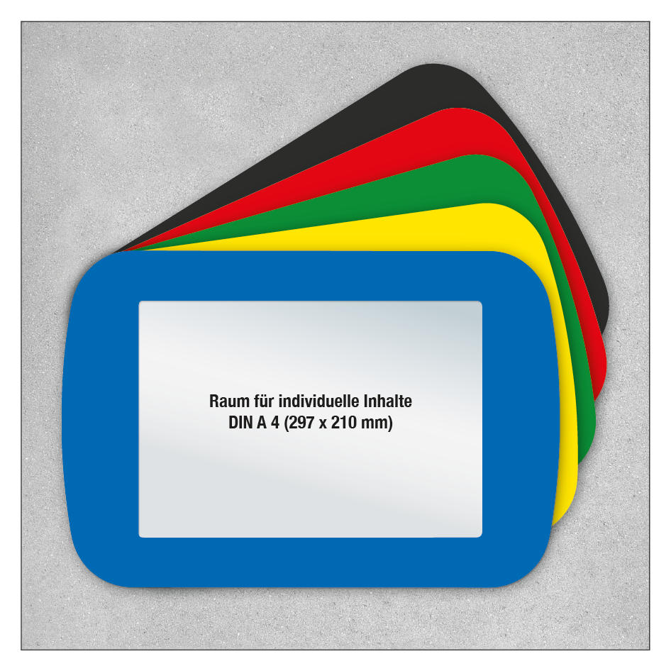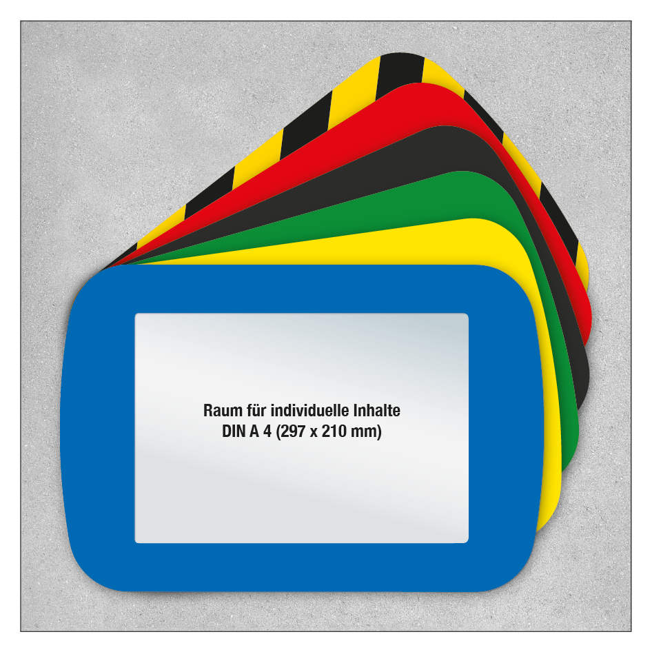 Selbstklebende Kennzeichnungsrahmen sind Bodenaufkleber mit vordefinierten Platzhaltern für Ihre individuellen Inhalte. Sie sind äußerst robust und auch für starke Beanspruchung durch Fahrzeuge (Stapler etc.) geeignet. Unsere Kennzeichnungsrahmen sind in zwei Größenausführungen erhältlich und können sowohl auf dem Boden als auch an der Wand zum Einsatz kommen. Ihre individuellen Inhalte liegen gut geschützt unter einer transparenten Hartfolie – dies garantiert eine dauerhafte Kennzeichnung von Arbeitsbereichen und Lagerflächen.