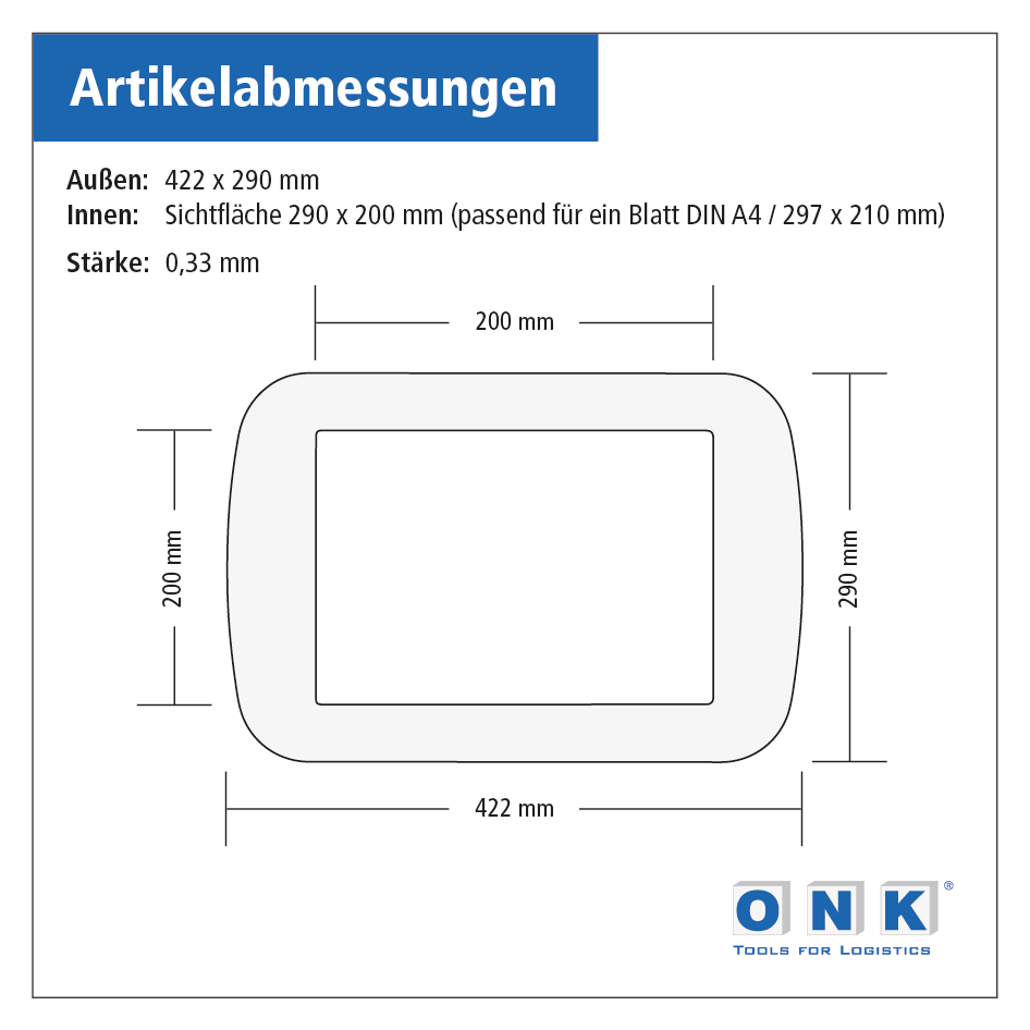 Große Variante: ca. 422 x 290 mm (passend für ein Blatt DIN A4 / 297 x 210 mm)