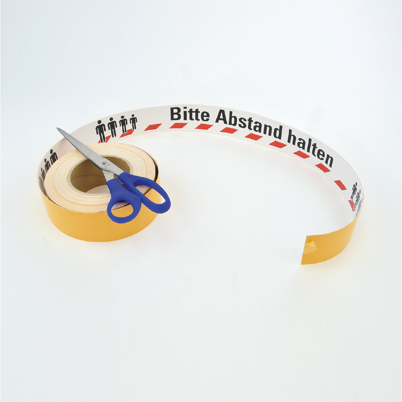 Die einfache Verklebung und hohe Strapazierfähigkeit machen unsere Fußbodenaufkleber auf Rolle zur idealen Bodenmarkierung für hochfrequentierte Zonen im Mitarbeiter- und Kundenverkehr – als Warnmarkierung für z.B. Verkaufsräume, Ladenzeilen, öffentliche Einrichtungen und Verwaltungsgebäude, Wartezonen, Labore, Gewerbeobjekte und andere Bereiche mit erhöhter Infektionsgefahr, in denen es auf eine konsequente Distanzeinhaltung zu anderen Personen ankommt. Unsere Fußbodenkleber sind mit einem starken Kleber ausgerüstet, strapazierfähig und haften auf fast allen glatten Oberflächen im Innenbereich.