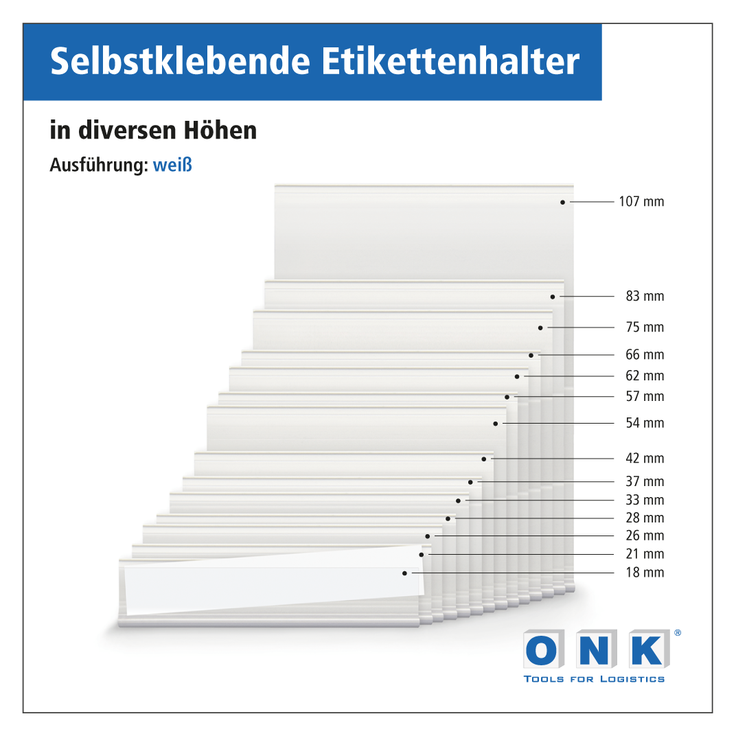 Sie möchten eine flexible Lösung, bei der die Kennzeichnung von Lagerorten mit Ihren Anforderungen wachsen und nach Bedarf geändert werden kann? Hier bieten sich unsere Etikettenhalter für Einzeletiketten oder Etikettenhalterleisten für ganze Regalbreiten an. Die Bestückung der Etikettenhalter mit Etiketten ist denkbar einfach, ein nachträgliches Versetzen und Austauschen jederzeit möglich. Die Scanner-Lesbarkeit bei Barcodes bleibt dabei stets erhalten. Unsere Etikettenhalter und Etikettenhalterleisten sind praktisch, wenn die Beschriftungen variabel sein sollen – z.B. bei selbst gedruckten oder handbeschriebenen Etiketten. Unsere Etikettenhalter bestehen aus einem schlagfesten Hart-PVC und sind bei allen Regaltypen einsetzbar.