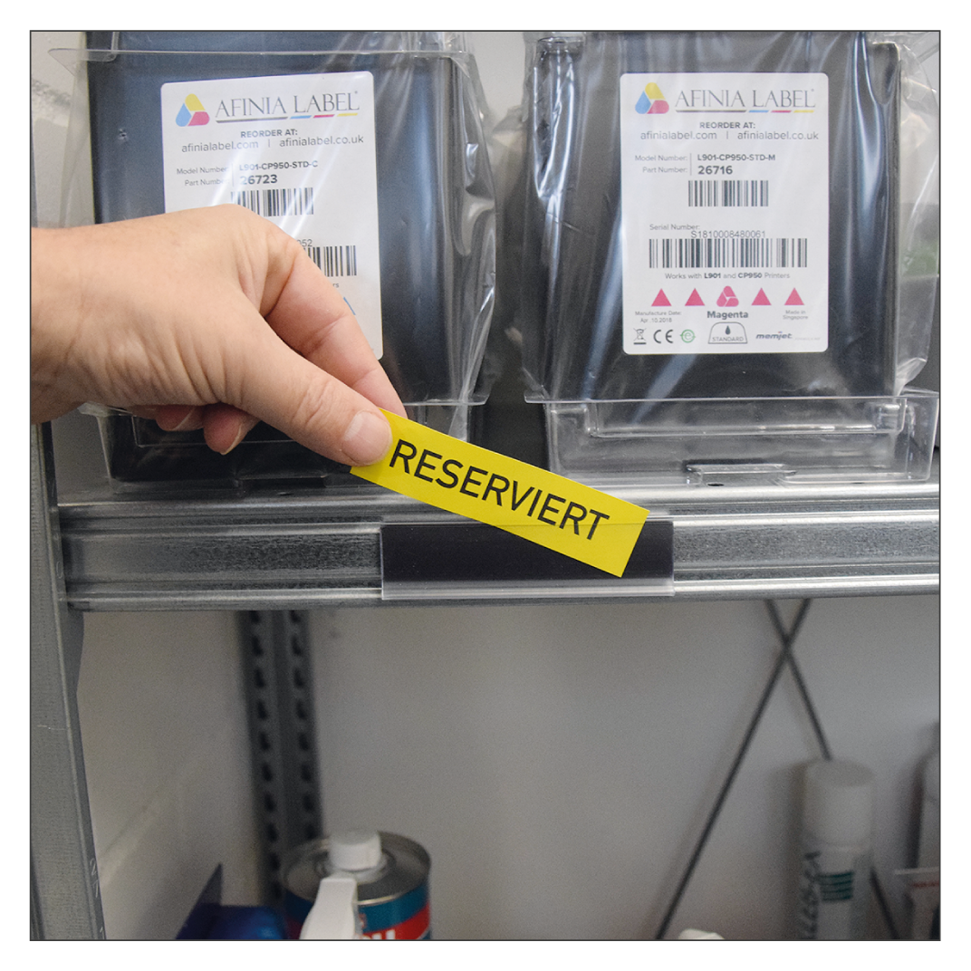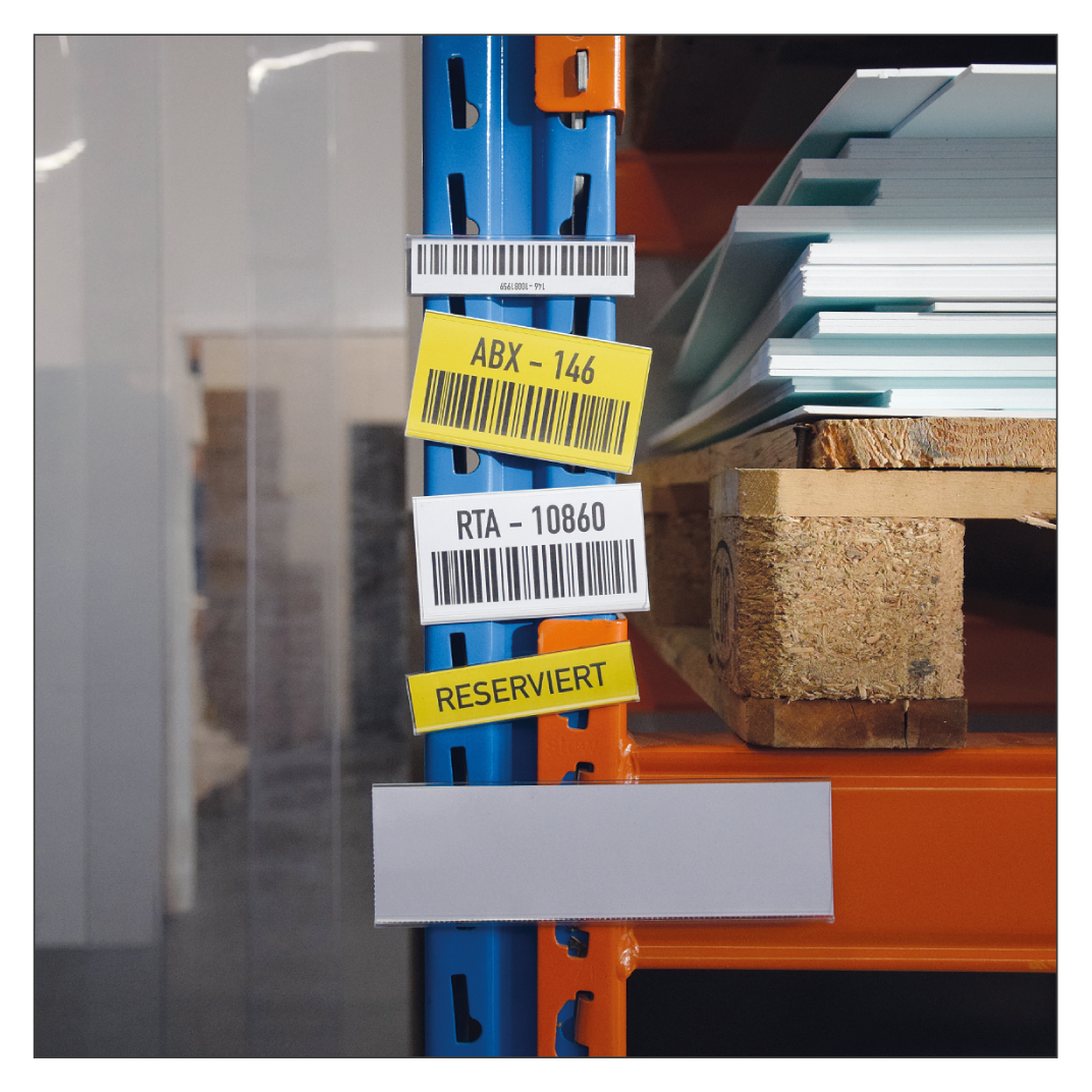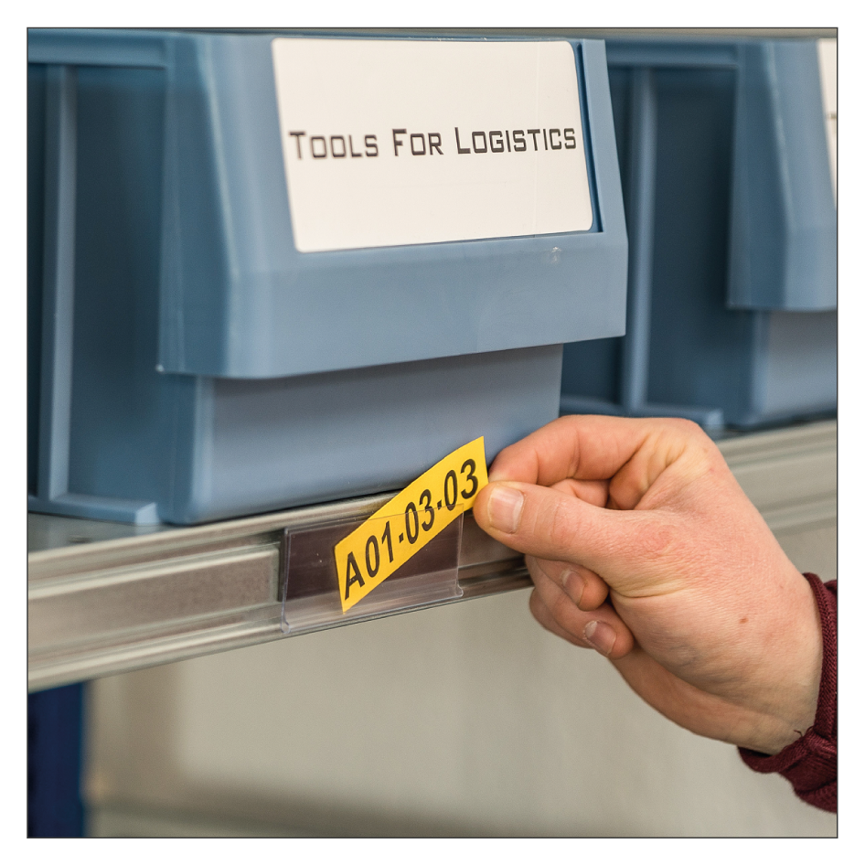 Sie möchten eine flexible Lösung, bei der die Kennzeichnung von Lagerorten mit Ihren Anforderungen wachsen und nach Bedarf geändert werden kann? Hier bieten sich unsere Etikettenhalter für Einzeletiketten oder Etikettenhalterleisten für ganze Regalbreiten an. Die Bestückung der Etikettenhalter mit Etiketten ist denkbar einfach, ein nachträgliches Versetzen und Austauschen jederzeit möglich. Die Scanner-Lesbarkeit bei Barcodes bleibt dabei stets erhalten. Unsere Etikettenhalter und Etikettenhalterleisten sind praktisch, wenn die Beschriftungen variabel sein sollen – z.B. bei selbst gedruckten oder handbeschriebenen Etiketten. Unsere Etikettenhalter bestehen aus einem schlagfesten Hart-PVC und sind bei allen Regaltypen einsetzbar.