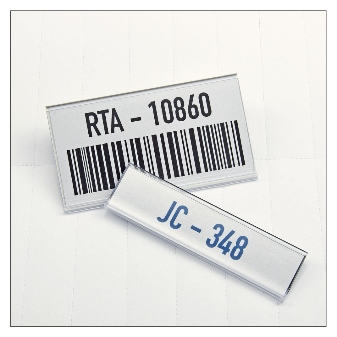 • Diese Etikettenhalter sind auch als selbstklebende Artikel erhältlich. Selbstklebende Etikettenhalter finden Sie hier.