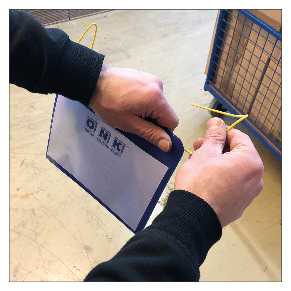 Biegedrähte sind eine einfache, aber sehr flexible und schnelle Befestigungslösung von gelochten oder mit Schlaufen ausgerüsteten Einstecktaschen, können aber auch als universelles Befestigungsmittel eingesetzt werden. Unsere Biegedrähte sind mit einer gelben Schutzhülle ummantelt und leicht zu verbiegen, so dass an Gitterboxen, Gitterwagen und überall dort, wo herkömmliche Befestigungsmittel zu aufwendig sind oder nicht passen, ein sicherer Halt gewährleistet ist. Unsere Biegedrähte sind in einer U-Form rechtwinklig für gängige Dokumententaschen vorgebogen, lassen sich aber leicht an Ihre Bedürfnisse anpassen. Eine Kürzung der Biegedrähte können Sie ganz einfach mit einem handelsüblichen Seitenschneider ausführen.