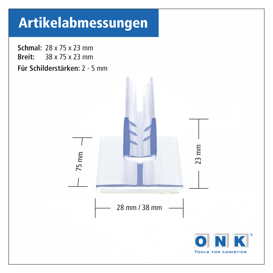 • 28 mm (B) x 75 mm (L) x 23 mm (H), für eine Materialstärke von 2 mm