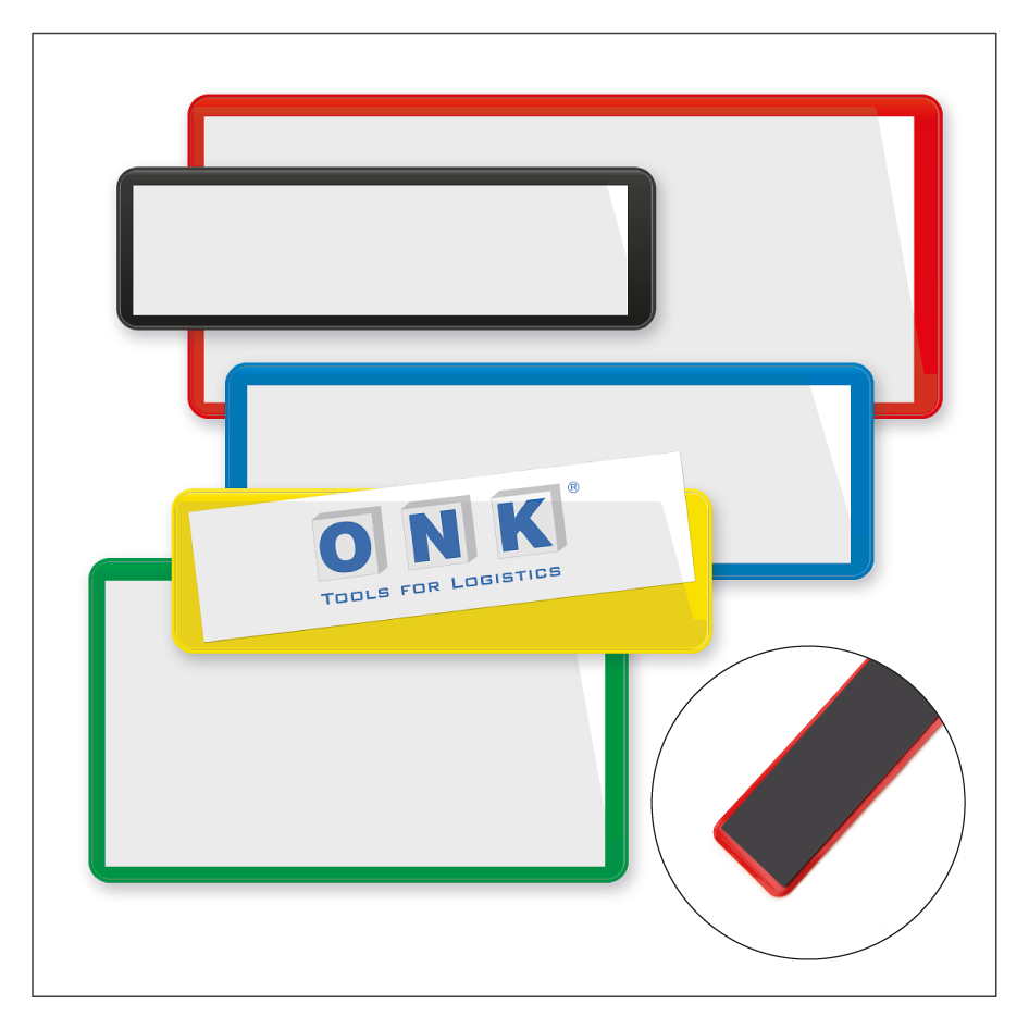 - Magnetische Etikettentaschen haften auf allen eisenhaltigen Oberflächen.