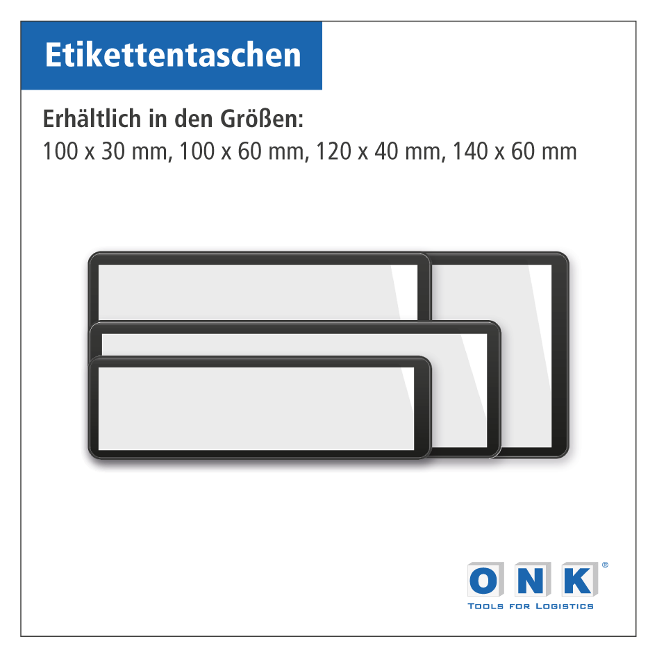 Etikettentaschen sind sinnvolle Organisationsmittel zur Aufnahme vielfältiger Informationen wie z.B. Artikelpreisen, Produktbeschreibungen oder Barcode-Auszeichnungen in Lagern, Verkaufsbereichen, Betrieben, Schulen oder Bibliotheken. Die Etikettentaschen sind aus weichen PVC-Kunststofffolien gefertigt, die zweilagig miteinander verschweißt sind – farbige Trägerfolien bilden stets die Basis, die formgestanzten Frontfolien sind transparent und zur zwei Seiten hin offen. Dies erleichtert ein schnelles Bestücken mit den mitgelieferten Papieretiketten oder deren Wechsel. Es können aber auch andere Einstecketiketten oder selbstgefertigte Etiketten aus handelsüblichen Papieren zum Eisatz kommen. Diese werden handschriftlich oder mit einem Drucker beschriftet und dann einfach auf das gewünschte Format zugeschnitten. Unsere magnetisch haftenden Etikettentaschen sind in fünf Grundfarben und vier Formaten für eine zielgerichtete Auszeichnung erhältlich.