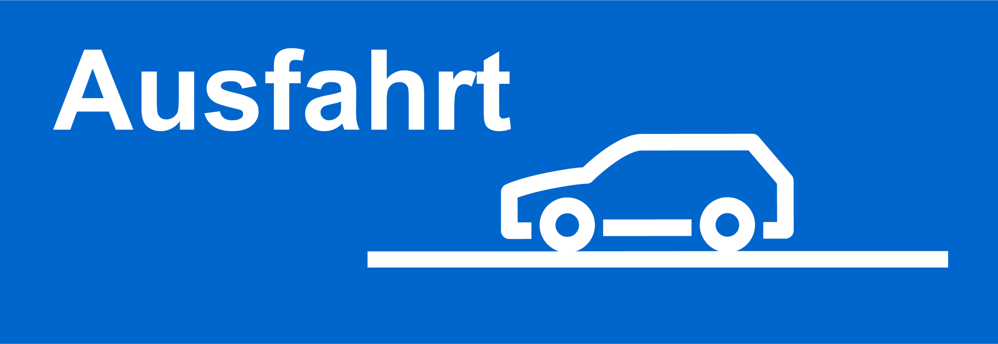 Ausfahrt mit PKW - weißes Motiv auf blauem Grund - 1.200 x 410 mm