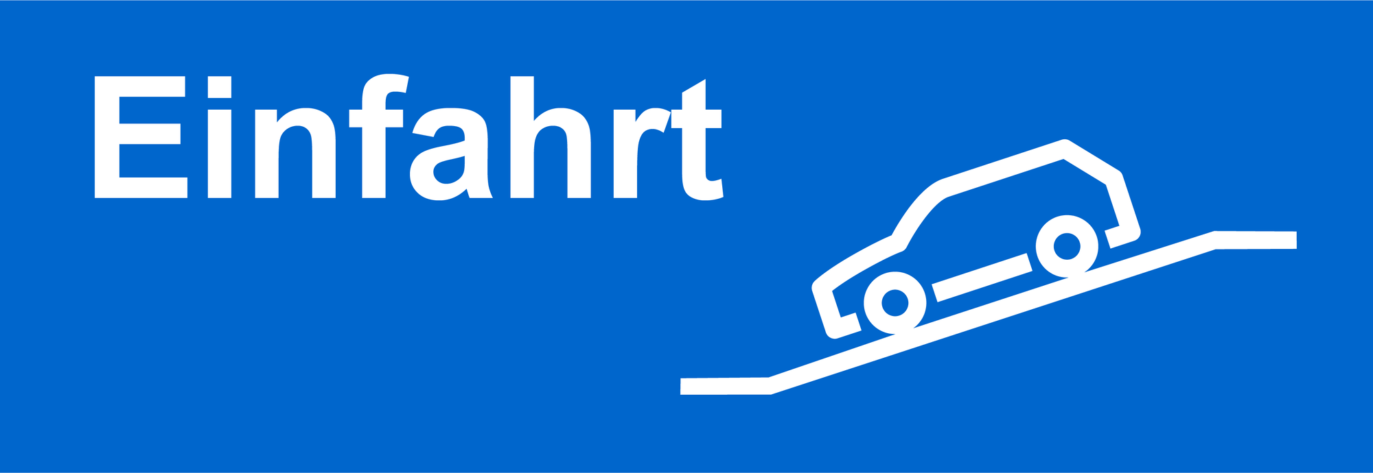 Einfahrt mit PKW - weißes Motiv auf blauem Grund - 1.200 x 410 mm