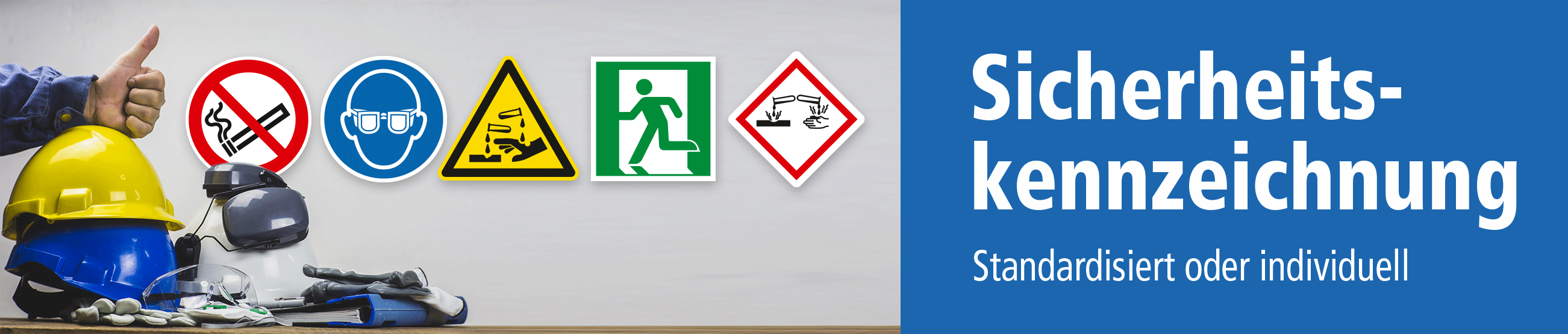 Hier greift die gesetzlich vorgeschriebene Sicherheitskennzeichnung – mit genormten Zeichen, Symbolen und Hinweisen nach ASR A 1.3, BGV A8 oder EN ISO 7010 und anderen sowie praxisbewährten Schildern, die in Zusammenarbeit mit Sicherheits- und Brandschutzbeauftragten an den jeweiligen Orten in geeigneten Ausführungen und Größen anzubringen sind.