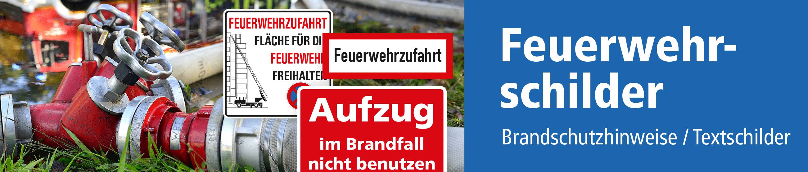 Feuerwehrschilder und Brandschutzhinweise sind Sicherheitshinweise rund um den Brandschutz – zur Beschilderung von feuergefährdeten Bereichen und Räumen sowie Brandschutzeinrichtungen. Feuerwehrschilder kommen aber auch zum Einsatz, um Flächen, Bereiche und Wege für die Feuerwehr zu kennzeichnen. Dies erfolgt mit geeigneten Schildern in Form von Parkverboten und Feuerwehrzufahrthinweisen in vielfältigen Ausführungen. Feuerwehrschilder und Brandschutzhinweise für den Außenbereich sollten für eine bessere Wahrnehmung reflektierend ausgerüstet sein, im Innenbereich hingegen langnachleuchtend, um im Falle eines Stromausfalls oder einer starken Rauchentwicklung, sofern keine strombetriebene Notbeleuchtung installiert ist, die Orientierung sicherzustellen.