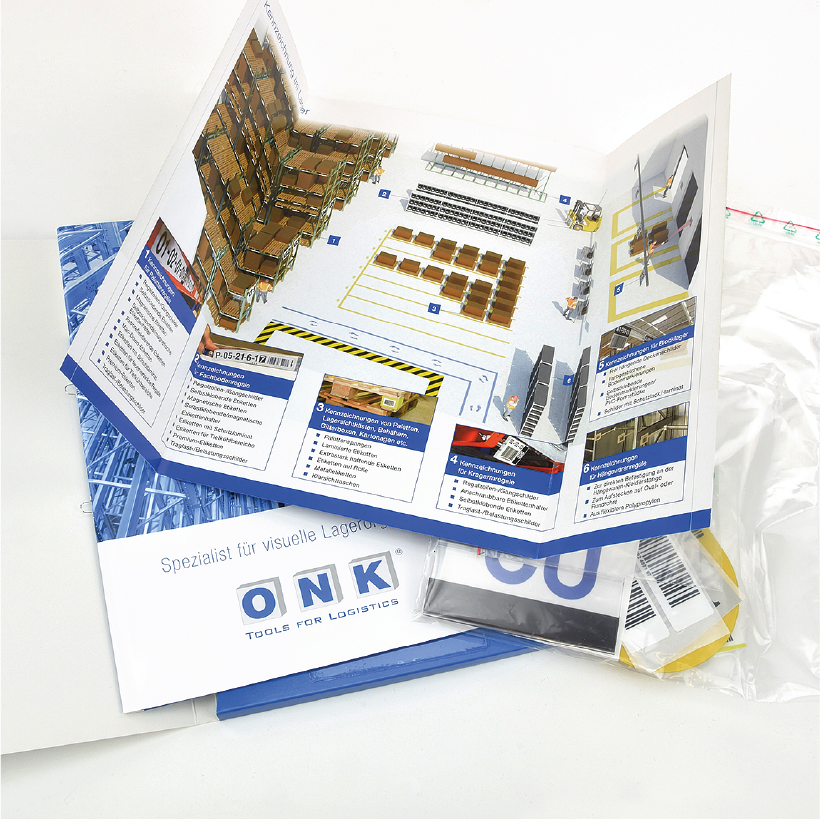 ONK-Katalog zur ersten Information zu unseren Produkten und Dienstleistungen. Bitte sprechen Sie uns an, wenn Sie Fragen zu den abgebildeten und beschriebenen Inhalten haben. Gerne beantworten wir Ihre Fragen. Merkmale dieses Katalogs: 43 Seiten  DIN A 4 Überformat mit Abheftklammern  Verpackungseinheiten: 1 Stück  Bitte beachten Sie: Der Kataloginhalt stellt nur eine grobe Übersicht unserer Produkte und Dienstleistungen dar. Als Spezialist für die visuelle Lagerorganisation entwickeln, produzieren und montieren wir wegweisende Lösungen zur Kennzeichnung und Identifikation im Lager und dem Logistikbereich. Wegweisend, weil unsere Etiketten, Schilder und Markierungen schnell und zuverlässig Warenströme im Lager steuern.    Wir bieten einen europaweiten Montageservice an.