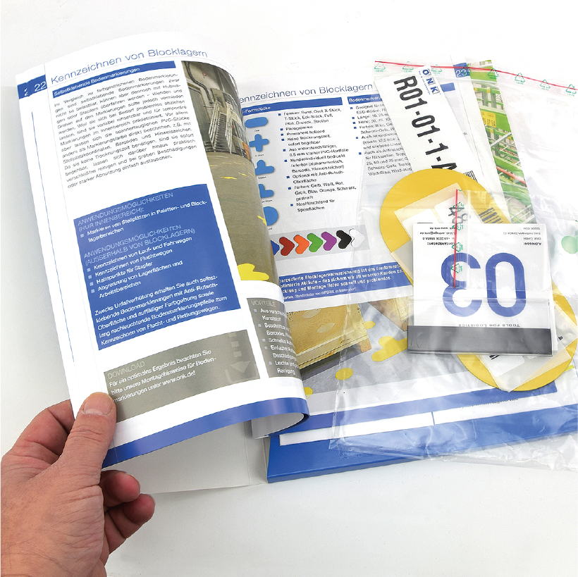 • Der Mappeninhalt stellt nur eine grobe Übersicht unserer Produkte und Dienstleistungen dar. Als Spezialist für die visuelle Lagerorganisation entwickeln, produzieren und montieren wir wegweisende Lösungen zur Kennzeichnung und Identifikation im Lager und dem Logistikbereich. Wegweisend, weil unsere Etiketten, Schilder und Markierungen schnell und zuverlässig Warenströme im Lager steuern.